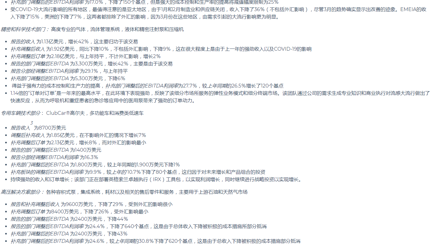 英格索蘭公布2020年第一季度業(yè)績(jī)